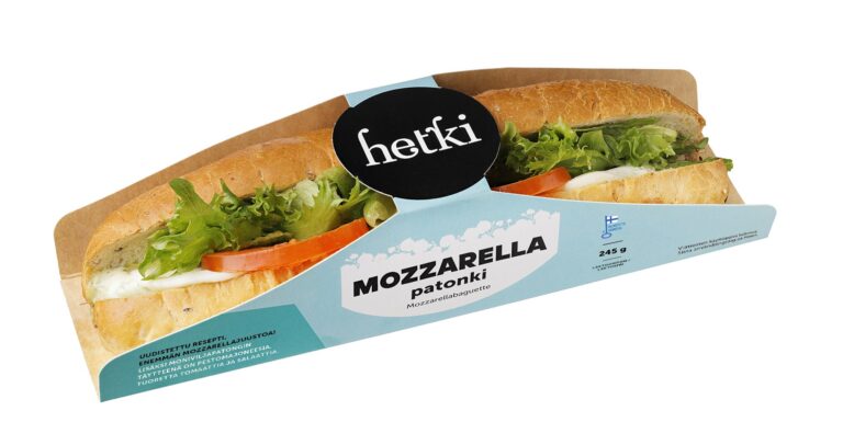 Moniviljapatonki 51 % (VEHNÄ, vesi, leipäseos (maissihiutale, pellavansiemen, hirssi, auringonkukansiemen, RUISHIUTALE, VEHNÄGLUTEENI, dekstroosi, VEHNÄMALLASJAUHO, rapsiöljy, entsyymi, jauhonparanne (E300)), sokeri, hiiva, leivänparanne (vesi, VEHNÄJAUHO, suola, hapanjuuri (VEHNÄ), emulgointiaine (E472e)), rypsiöljy, jodioitu suola, OHRAMALLASJAUHO), pestomajoneesi 18 % (majoneesi (rapsiöljy, vesi, KANANMUNA, SINAPINSIEMEN, sokeri, suola, etikka, cayennepippuri, happamuudensäätöaineet (E270, E330), säilöntäaine (E202)), pestokastike (basilika, rypsiöljy, oliiviöljy, auringonkukansiemen, vaalea balsamietikka (viinietikka, rypälemehutiiviste), suola, valkosipuli, sokeri, mustapippuri, JUUSTOAROMI, happamuudensäätöaineet (E330, E300), muunnettu maissitärkkelys, säilöntäaineet (E202, E211)), tuorejuusto (pastöroitu MAITO ja KERMA, suola, stabilointiaineet (E407, E410), hapate), mozzarellajuusto 12 % (pastöroitu MAITO (EU), suola, mikrobiologinen juoksute, hapate, happamuudensäätöaine (E330)), tomaatti, lehtisalaatti.