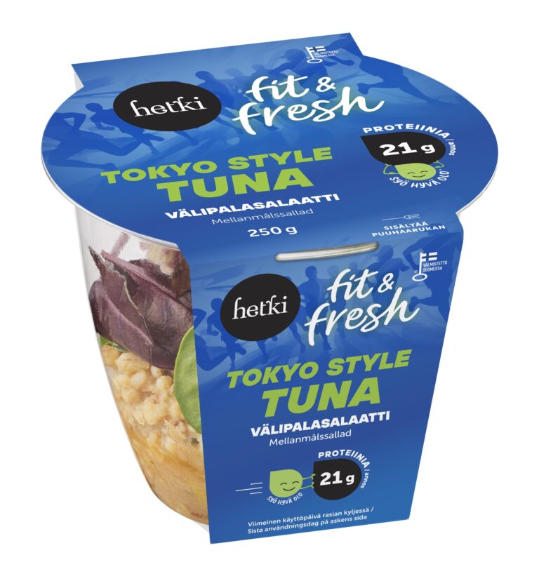 Tokyo Style Tuna välipalasalaatissa on pohjana mukavaa suutuntumaa tuova ohra–härkäpapuseos. Se on helppo ja herkullinen valinta silloin, kun kaipaat kevyttä mutta täyttävää välipalaa. Proteiinipitoinen tonnikala ja soijapapu antavat pitkäkestoista energiaa ilman raskasta oloa. Mehukas tomaatti, pinaatti ja viinijuurikas tuovat väriä ja tasapainoa, kun taas wasabi, limemehu ja ruohosipuli viimeistelevät maun japanilaisella twistillä.