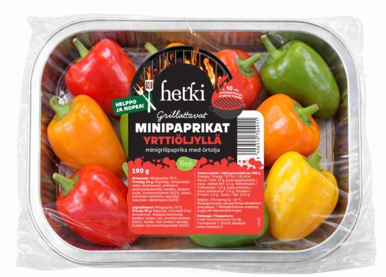 Tämä minipaprikamix tuo grillaukseen väriä ja makua yhdistämällä makeat paprikat ja aromaattisen yrttiöljyn. Grillissä paprikat pehmenevät ja saavat herkullisen paahteisen sävyn, joka sopii monen ruoan lisukkeeksi. Helppo valmistaa – lisää öljy, grillaa ja nauti kesän mauista!