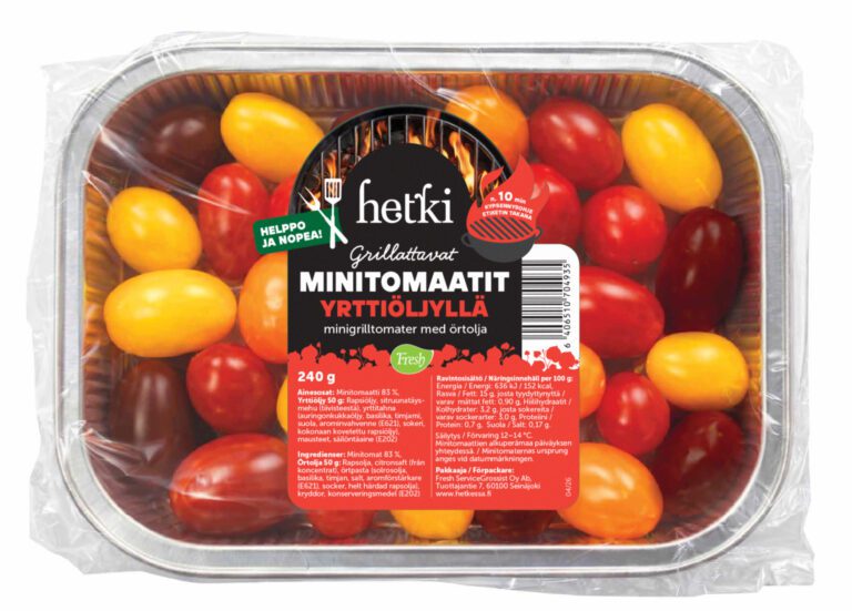 Tämä minitomaattimix tuo grillaukseen väriä ja makua yhdistämällä mehukkaat kirsikkatomaatit ja aromaattisen yrttiöljyn. Grillissä tomaatit pehmenevät ja saavat herkullisen paahteisen sävyn, joka sopii monen ruoan lisukkeeksi. Helppo valmistaa – lisää öljy, grillaa ja nauti kesän mauista!