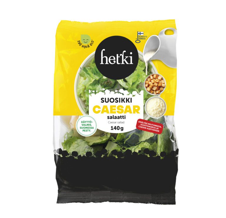 Caesarkastike 30 g: Rapsiöljy, vesi, väkiviinaetikka, sokeri, suola, sokerisiirappi, mausteet (valkosipuli, paprika, kaneli, neilikka, inkivääri, mustapippuri), keltuaisjauhevalmiste (KANANMUNANKELTUAISJAUHE, suola, maltodekstriini), valkosipuli, sakeuttamisaine (E415), säilöntäaine (E202), muunnettu maissitärkkelys, happamuudensäätöaine (E330), hiivauute, anjovisaromi (ei kalaperäinen)